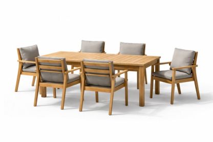 Teak Wood Outdoor Dining Set with Cushioned Chairs and Table